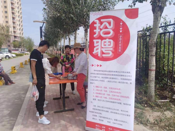 7月10日、11日、19日,物業(yè)公司聯(lián)合內(nèi)蒙古眾信人力資源服務(wù)有限責(zé)任公司赴市勞動(dòng)人才市場(chǎng)及在管的陽光美居小區(qū)、祥和苑小區(qū),招聘高素質(zhì)的勞務(wù)派遣專業(yè)技能人才和一線員工,并建立了人才儲(chǔ)備庫。
