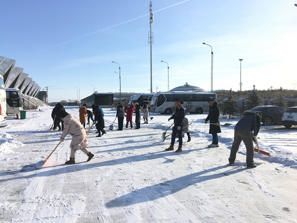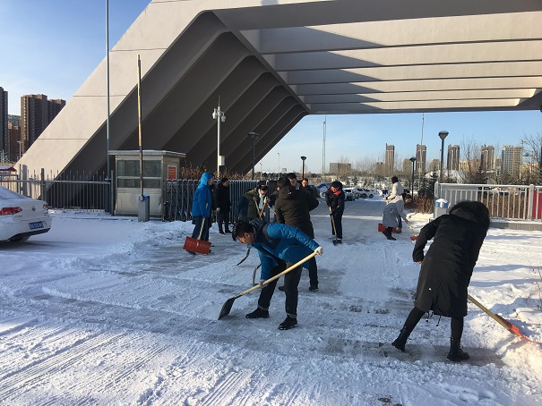 寒冷的天氣擋不住大家的熱忱,客運公司全體員工揮舞著鐵鍬和除雪鏟,齊心協力,干勁十足,鏟的鏟、推的推、掃的掃,干的熱火朝天,不亦樂乎,忙碌的身影構成了一道亮麗的風景線。經過兩個多小時的奮戰,將公司附近的路面和場站院內的主干道積雪全部清除干凈。