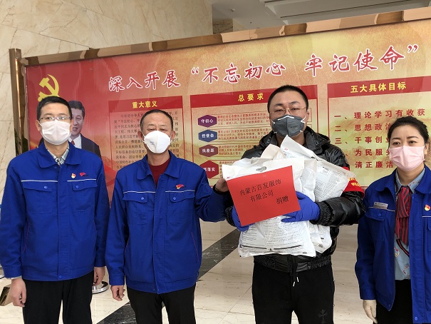 城發公司黨委副書記、工會主席張永接收了捐贈,并衷心感謝內蒙古百發服飾有限公司對城發公司防控工作的大力支持和對供熱一線人員的關心關愛,表示將立即把口罩全部發放到奮戰在一線的工作人員手中,鞭策和鼓勵大家全力以赴投入到疫情防控和保供熱的一線工作中去,眾志成城一起努力戰勝疫情。