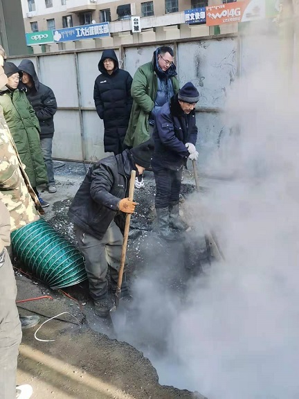 19日晚上10時,歷經15個小時搶修完畢。搶修結束后,搶修師傅們從挖開的坑里出來后,身穿的工作服上沾滿了泥漿,衣服也被熱氣蒸濕了,時值寒冬,室外溫度零下16℃,衣服很快被凍硬。一位剛從坑里出來打著哆嗦的搶修師傅告訴筆者,管道里水的溫度近90°,溝里熱氣騰騰,身上都冒汗呢,但一出地面,100多度的溫差,感覺直接就凍到骨頭里了,腿都凍直了,邁不了步。