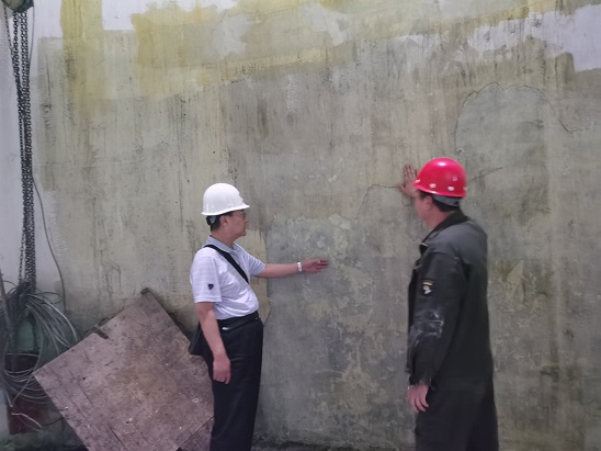 檢查小組通過采用外力敲擊及肉眼觀察的方式對B車間煙囪內(nèi)壁防腐層施工質(zhì)量進(jìn)行詳細(xì)檢查。