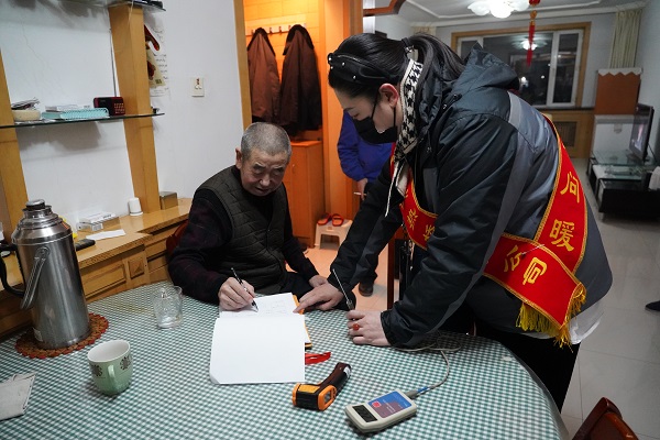 在社科院家屬樓3號樓1單元1樓東戶家中,該房屋戶型既是底層又是邊戶,工作人員利用專業的測溫設備測得用戶家中室溫為23℃。雖然室溫達標,但看到房主是一位上年紀的大娘,劉婷還是不放心,用手摸了摸用戶家中的暖氣,并用測溫槍對房間內的所用暖氣片都進行了測溫,測得暖氣片溫度平均都在45℃左右。"不用摸啦,也不用測了,別看我住的是一樓,但是可暖和啦,這個溫度我相當滿意。"大娘說到。隨后,工作人員拿出"便民服務卡",叮囑大娘家中暖氣有任何問題,都可以撥打上面的電話聯系客服管家,隨叫隨到。在小區1號樓2單元一戶頂層用戶家中,是一對老夫妻。開門的老大娘看到我們工作人員凍得通紅的雙手,趕忙給我們到了熱水,"都喝點熱水,在大娘這歇歇腳,暖和暖和。"大娘說到。在問到對我們的服務滿不滿意時,大爺激動的拉著工作人員的手說:"滿意,滿意,可滿意了。雖然在前期有一點小誤會,但是咱們工作人員一次次熱情地上門服務,認真負責地解決問題,我們之間的小誤會早就解開了。現在對咱們城發工作人員,除了感謝,更多的就是理解和體諒了。"臨走時,大爺還叮囑我們夏天不忙的時候,常來家里做客。