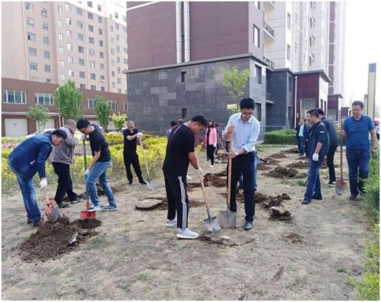 5月4日下午,物業公司組織抽調干部職工50余人赴在管項目金城小區開展創建美好家園主題植樹活動。活動共挖樹坑200余個,栽種丁香近2000株。
