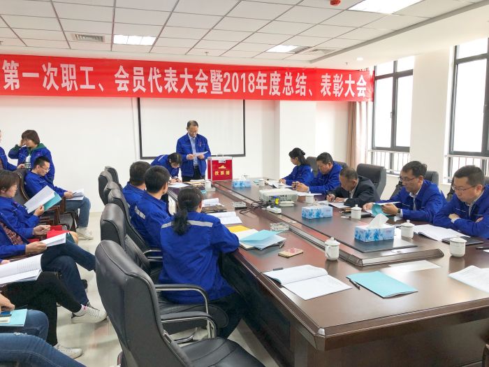 大會在莊嚴的《國歌》聲中拉開帷幕,會上審議通過了房地產公司2018年度工作報告、工會工作情況報告、工會經費使用情況報告,并對房地產公司2018年度主要工作成績進行了總結和肯定。隨后會議進行了第二屆工會委員會換屆選舉工作。最后大會對2018年公司涌現的先進集體和個人進行了表彰。