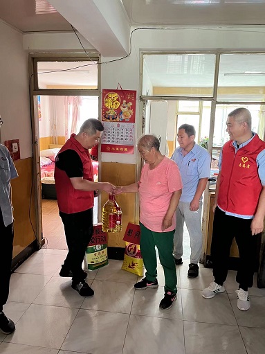 活動中,志愿者們分別來到獸醫站3號樓一單元101室的獨居空巢老人楊鳳英家和旺地嘉苑小區2號樓5單元4樓中戶低保戶殘疾人楊春杰家走訪慰問。其中,楊鳳英老人75歲,患有腎病,兒女不在身邊,多年獨居,無經濟來源,志愿者們得知老人的情況后,主動詢問老人的病情和醫保情況,并叮囑老人疫情期間注意自身防護;低保戶殘疾人楊春杰,57歲,無兒無女,半身不遂,生患殘疾,生活不便,無經濟來源,生活十分困難。志愿者們還為兩戶人家送去米、面、油等慰問品,表達了分公司黨支部的慰問和關愛。